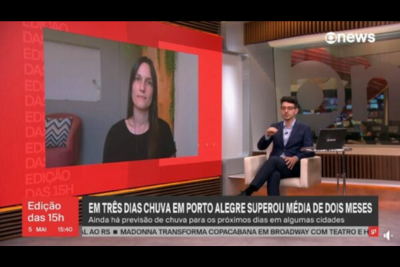 Em três dias chuva em Porto Alegre superou média de dois meses. GloboNews, 2024 (Profa. Camila B. Carpenedo)