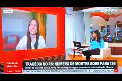 Tragédia no RS: número de mortes sobe para 136. GloboNews, 2024 (Profa. Camila B. Carpenedo)
