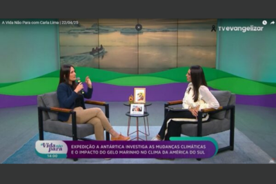 Expedição à Antártica investiga as mudanças climáticas e o impacto do gelo marinho no clima da América do Sul. A Vida Não Para – TV Evangelizar, 2025 (Profa. Camila B. Carpenedo)